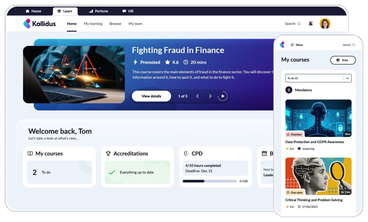 - Cross-product reporting for the Kallidus suite, to link learning and performance